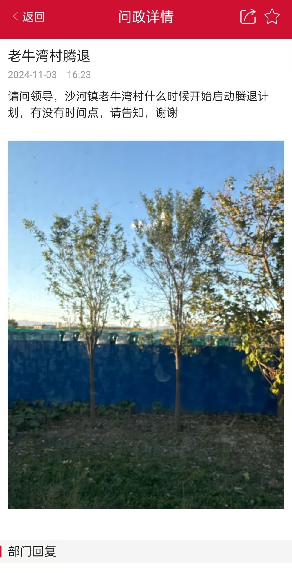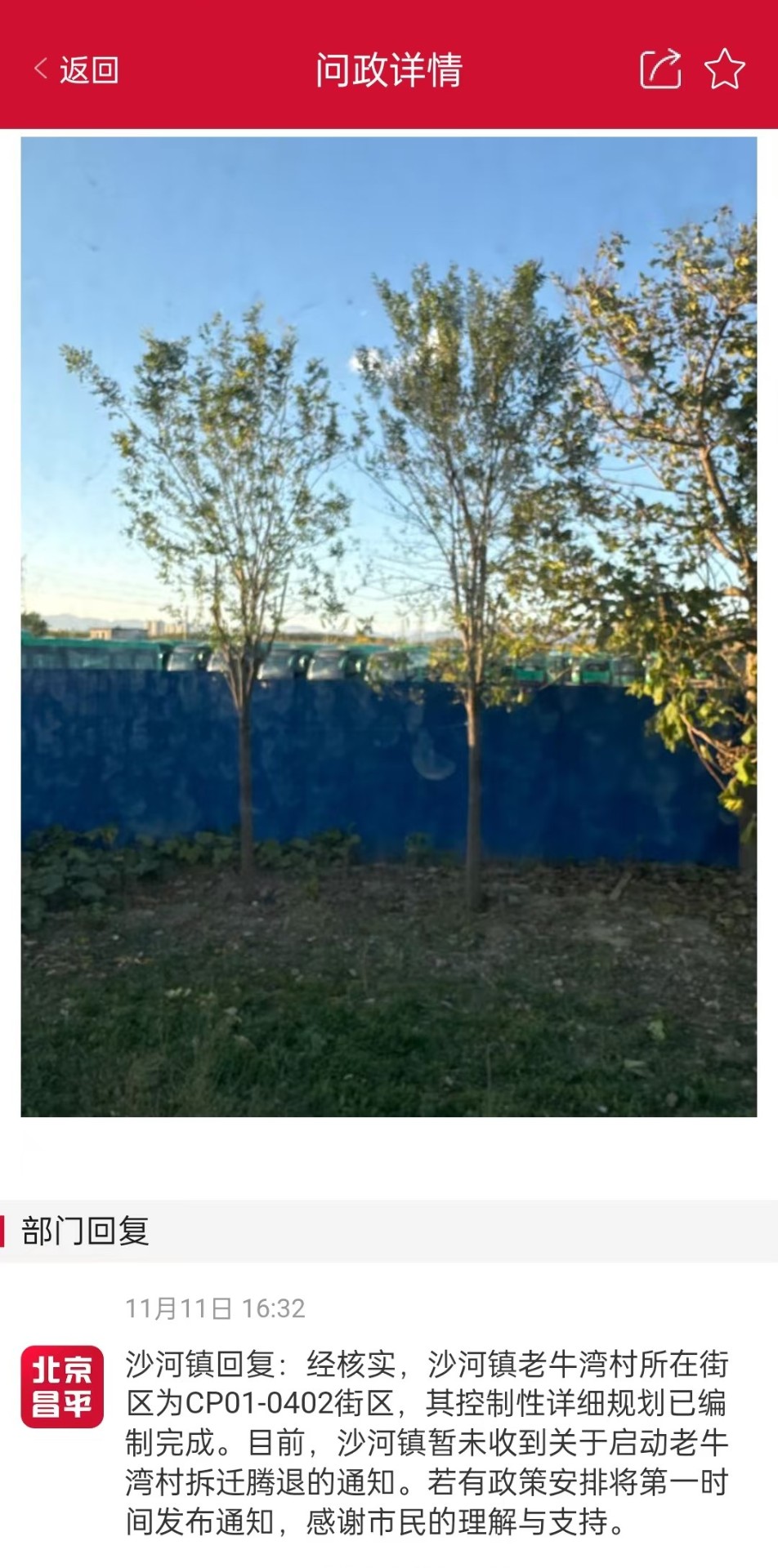 方興建筑提示您,北京昌平公眾號沙河鎮回復:經核實,沙河鎮老牛灣村所在街區為CP01-0402街區,其控制性詳細規劃已編制完成。目前,沙河鎮暫未收到關于啟動老牛灣村拆遷騰退的通知。若有政策安排將第一時間發布通知,感謝市民的理解與支持。